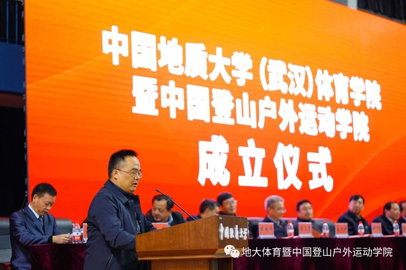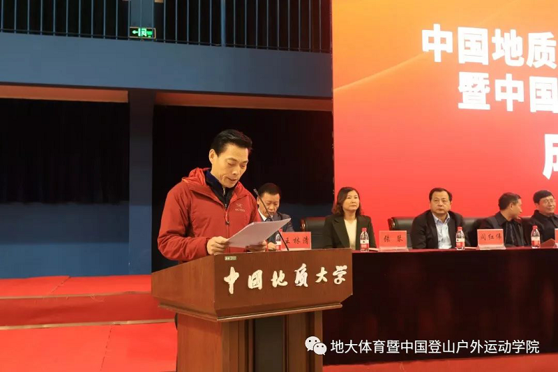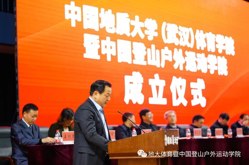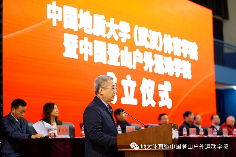 湖北省体育局局长胡功民同志在致辞中表达了对中国地质大学(武汉)成立beat365唯一官方网站和中国登山户外运动学院的祝贺,表示学院的成立对湖北省户外运动有着时代性的意义。