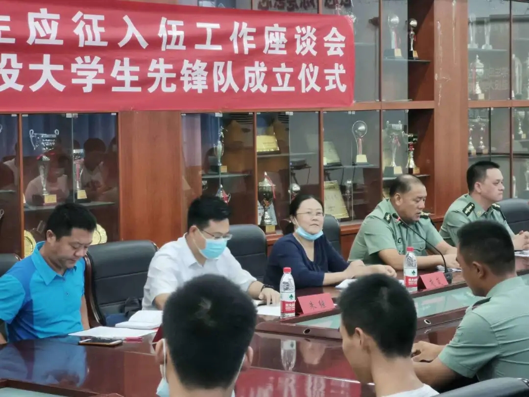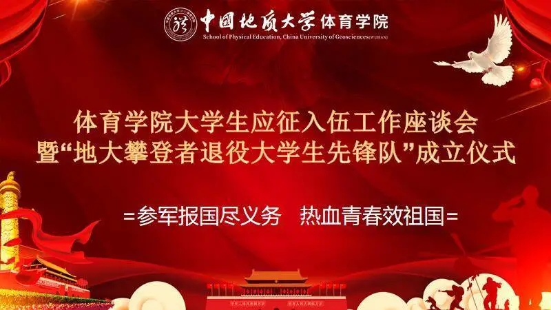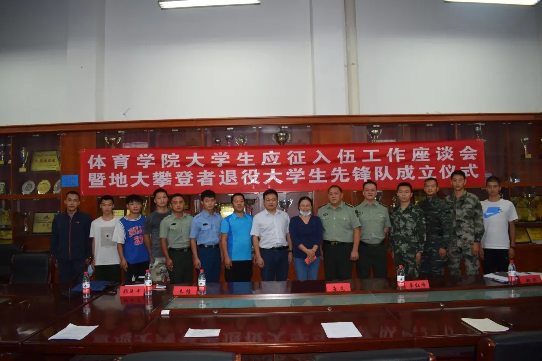 2020年9月10日15:00,beat365官网在体育馆二楼会议室召开了beat365唯一官方网站大学生参军应征工作座谈会暨地大攀登者退役大学生先锋队成立仪式。出席此次会议的领导有武装部副部长单红峰,学工部副部长朱继,武装部老师魏刚,beat365唯一官方网站党总支书记庞岚,beat365唯一官方网站党总支副书记张延平。参与本次会议的人员有beat365唯一官方网站在校的退役大学生和2020年应征入伍学生,以及beat365唯一官方网站部分同学。会议由131181班的陈岳峰同学主持。