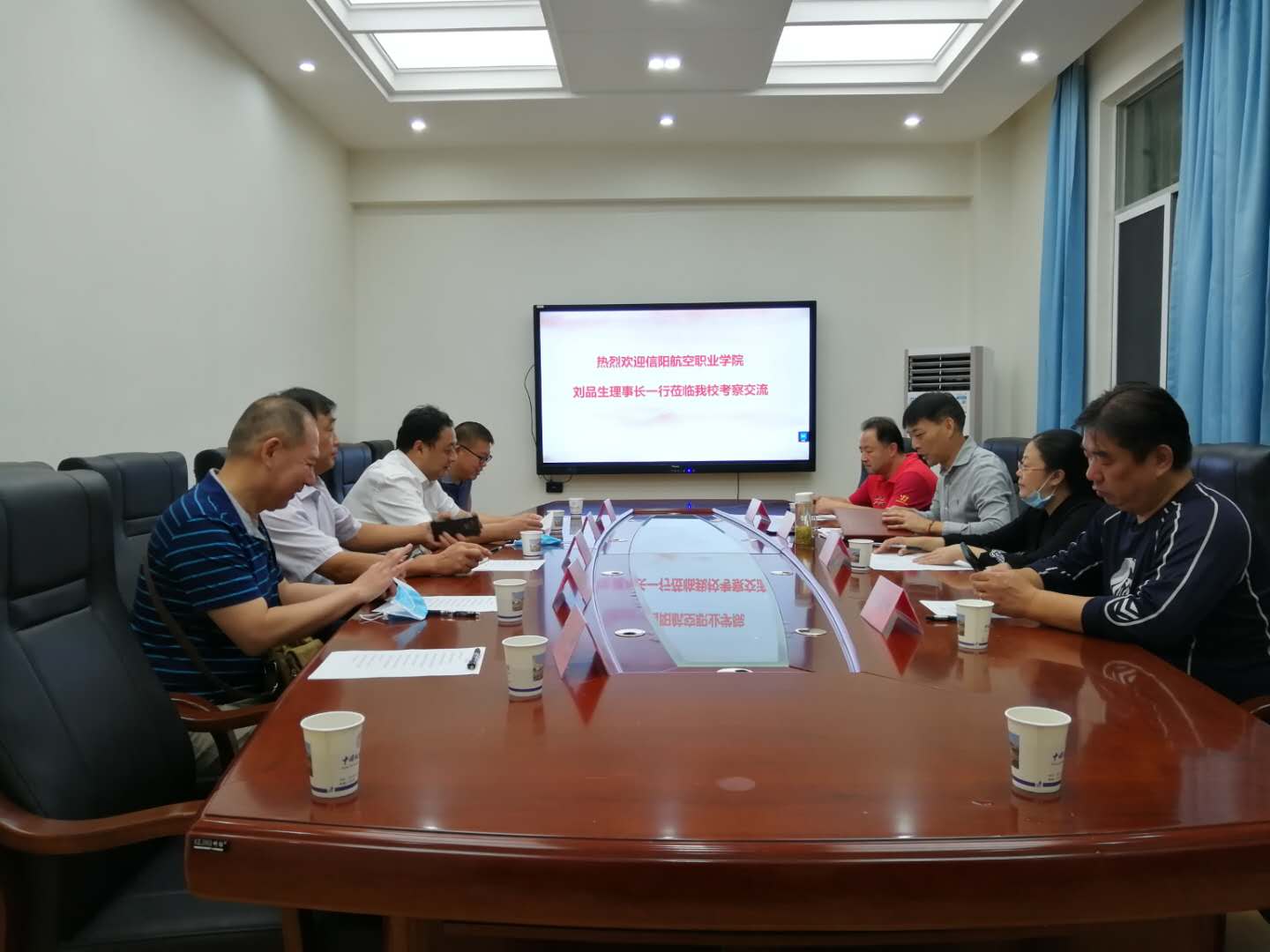 9月15日上午,河南信阳航空职业学院来beat365唯一官方网站洽谈合作办学,庞岚书记、董范院长以及相关老师出席并参与会谈。