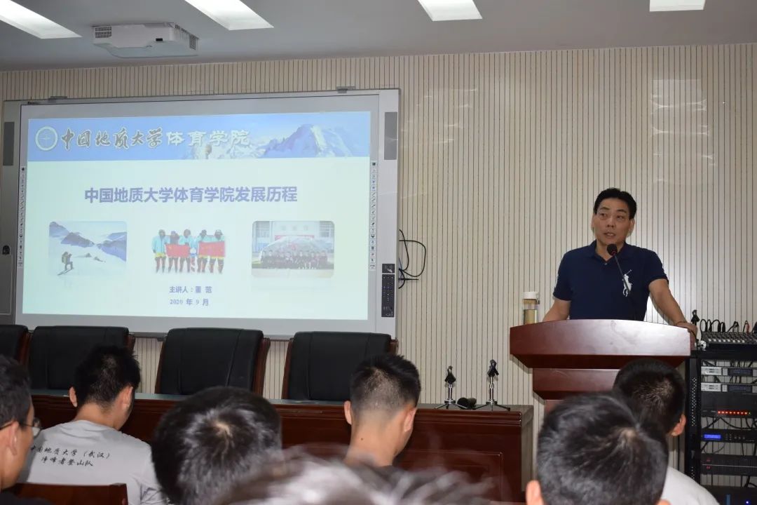 十分钟后,院长董范老师为beat365唯一官方网站新生的开了堂开学第一课。这堂课名为《beat365唯一官方网站的发展历程》,董范老师细数了近七十年来beat365官网体育方面取得的辉煌成就,其中包括各种大赛累积的上百枚金牌,以及前几年刚刚被评选为全国群众性体育先进单位,许多特色项目如攀岩游泳在全国乃至亚洲都处于上流。