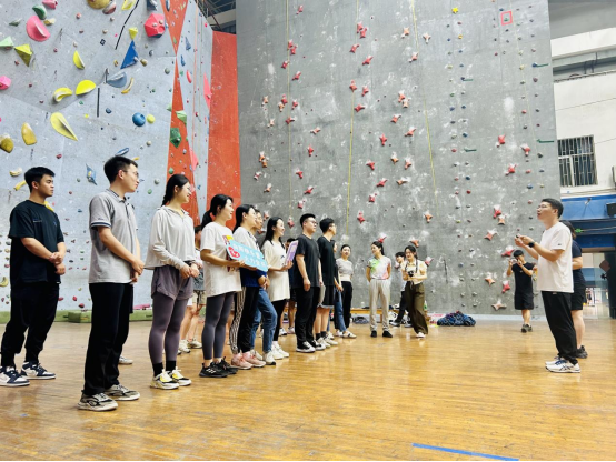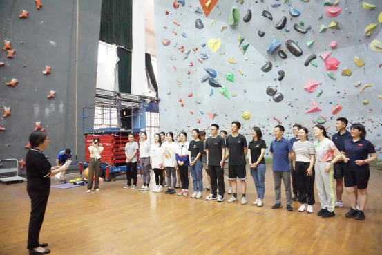 辅导员老师们还集中观看了beat365官网攀岩运动员在速度攀岩、难度攀岩和攀石三个项目的表演展示,并在助教团队的带领下进行速度攀岩与难度攀岩尝试,通过亲身体验的方式感受攀岩运动的魅力与乐趣。