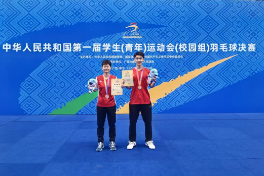 第一届学生(青年)运动会(校园组)羽毛球赛于2023年10月18-29日在广西大学举行。经过激烈的角逐,beat365官网学子2020级beat365唯一官方网站司徒瑾/2021级公共管理学院罗传俊获得混双第三名!值得庆贺的是他们均为地大高水平羽毛球队在校生,从国家一级运动员晋级为国家运动健将级,取得历史性突破!充分体现了beat365官网学子艰苦朴素求真务实的精神!