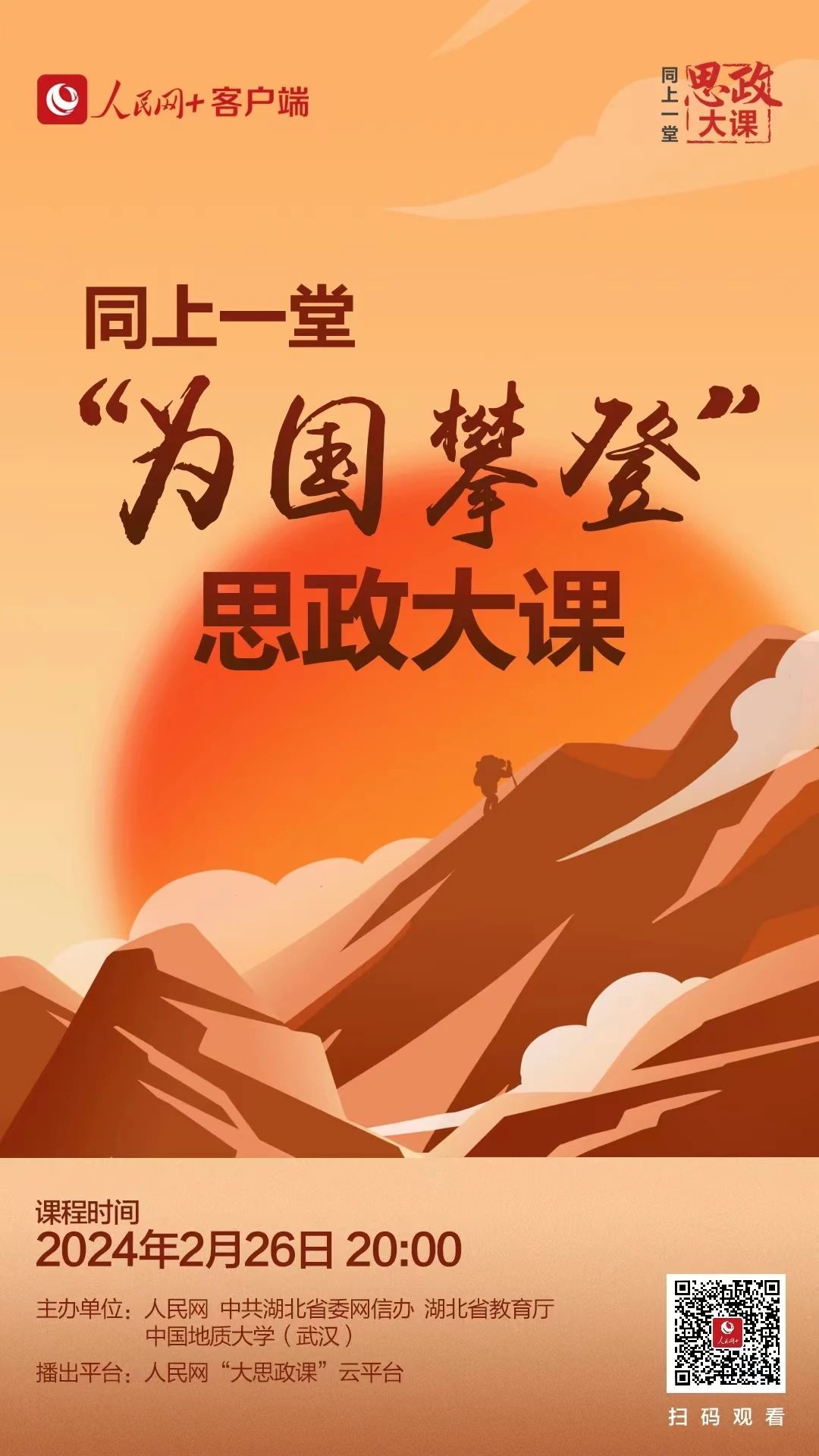 2月26日晚20:00,学院组织全院本研学生同上一堂“为国攀登”思政大课,听中国科学院院士中国地质大学(武汉)校长王焰新、地球科学学院教授宋海军、beat365唯一官方网站90后青年教师何鹏飞讲述征服珠峰的感人故事,领悟“扎根中国、胸怀天下勇攀高峰、追求卓越”的攀登精神。