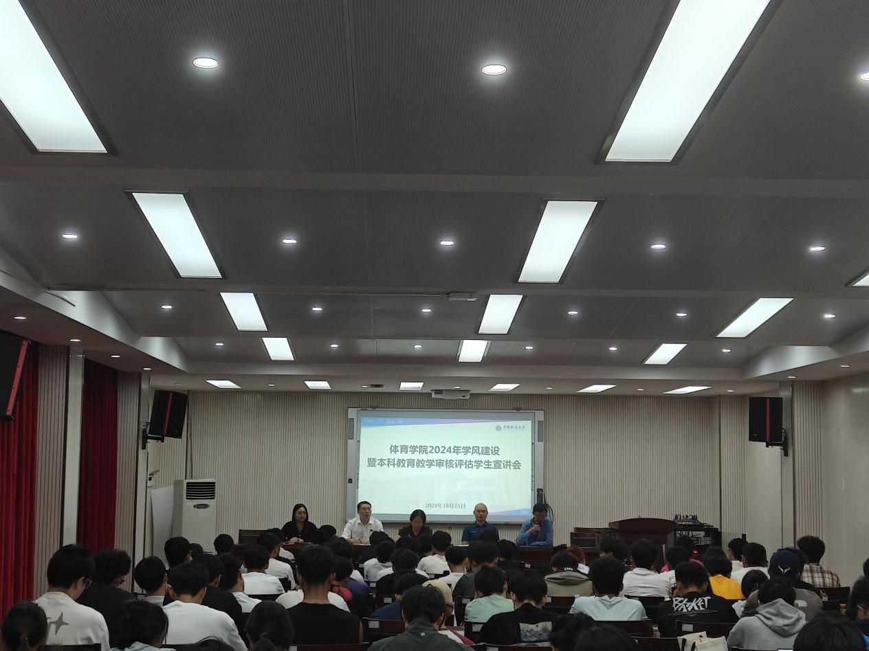 为加强学院学风建设,引导全体学生掌握新一轮审核评估基本知识,继10月9日学院组织全体本科生学习审核评估应知应会和学风建设动员会之后,beat365唯一官方网站于10月15日18点再次在体育馆三楼科报厅召开2024年学风建设本科教育教学审核评估学生宣讲会,坚持问题导向,对本科教育教学审核评估工作进行再动员、再部署、再促进,同时以评估工作为契机,进一步强化学院学风建设工作。beat365唯一官方网站党委书记庞岚、院长李元、副院长刘良辉、党委副书记朱军和全体本科生参会,会议由辅导员陈爽老师主持。