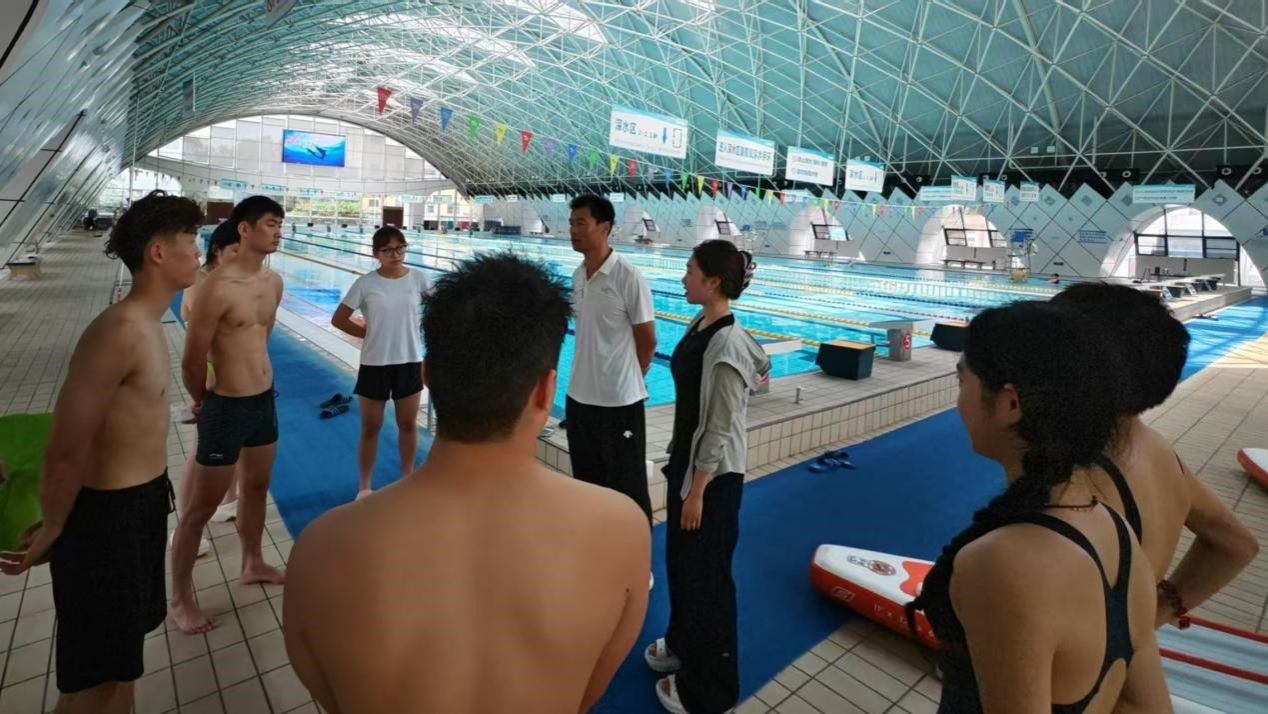 出征前,beat365唯一官方网站李伦副院长到游泳馆看望参训队员,强调了校园体育在培养学生团队精神、锤炼意志品质中的重要作用,鼓励参赛队员赛出风格、赛出水平。