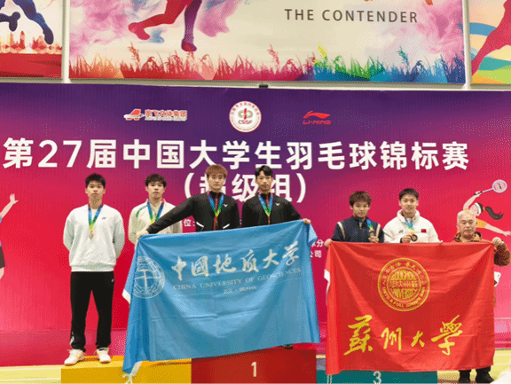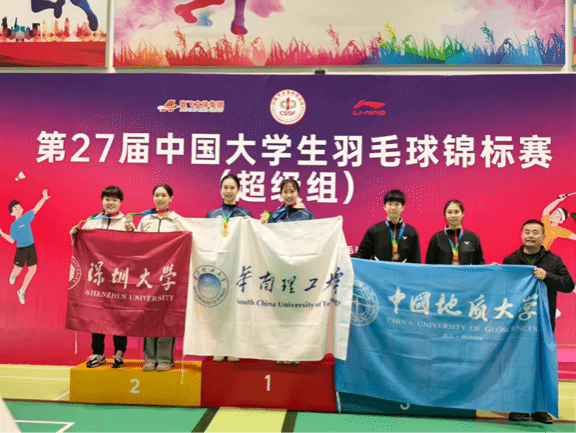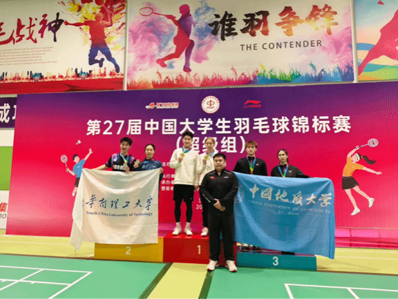 12 月 23 日至 30 日,第 27 届中国大学生羽毛球锦标赛(超级组)在江西上饶成功举办并圆满收官。本次比赛由中国大学生体育协会主办,作为国内大学生羽毛球领域的顶尖赛事,吸引了众多高校的 100 余名优秀运动员同台竞技,上演了一场场精彩绝伦的羽球对决。中国地质大学(武汉)羽毛球队在邹师思老师的带领下,6 名队员怀揣梦想出征,在高手云集的赛场上展现出强劲的竞技实力与昂扬的精神风貌。