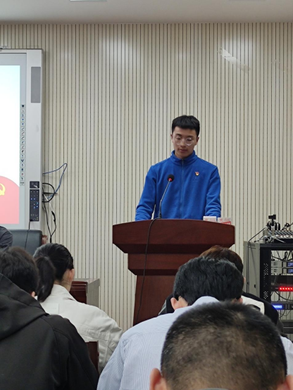 学生联合党支部书记綦霄同志代表本届支委向支部大会做述职报告,围绕“七个有力”从支部建设、发展党员、活动开展等方面汇报支部工作和党建成果。
