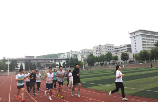 2022年5月11日下午,第二次大学生长江源科考50名队员在西区操场进行第一次日常训练。