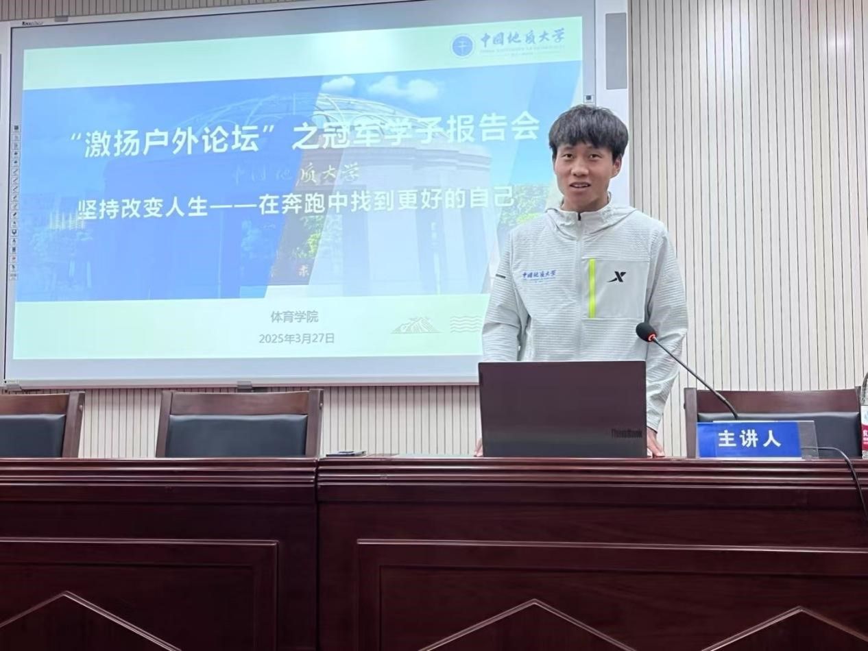 (通讯员:陈爽 刘博文)为发挥朋辈示范引领作用,赓续弘扬攀登精神,激励广大学生坚定意志、锤炼本领,3月27日,学校学生工作四部门联合beat365唯一官方网站共同举办求实青年大讲堂暨“激扬户外论坛”之冠军学子报告会,本次活动邀请2025年武汉马拉松国内组冠军何杰做报告。会议由beat365唯一官方网站党委副书记朱军主持,全校近200名本研学生参会。