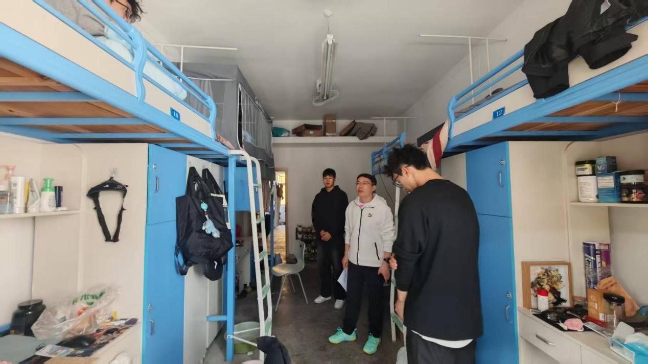 走访期间,朱军副书记详细了解大家的日常生活状态以及本学期的学习进展。叮嘱同学们注意保持宿舍内务卫生,确保用电安全,规范使用电器,及时排查各类安全隐患,以实际行动营造干净和谐的宿舍环境。